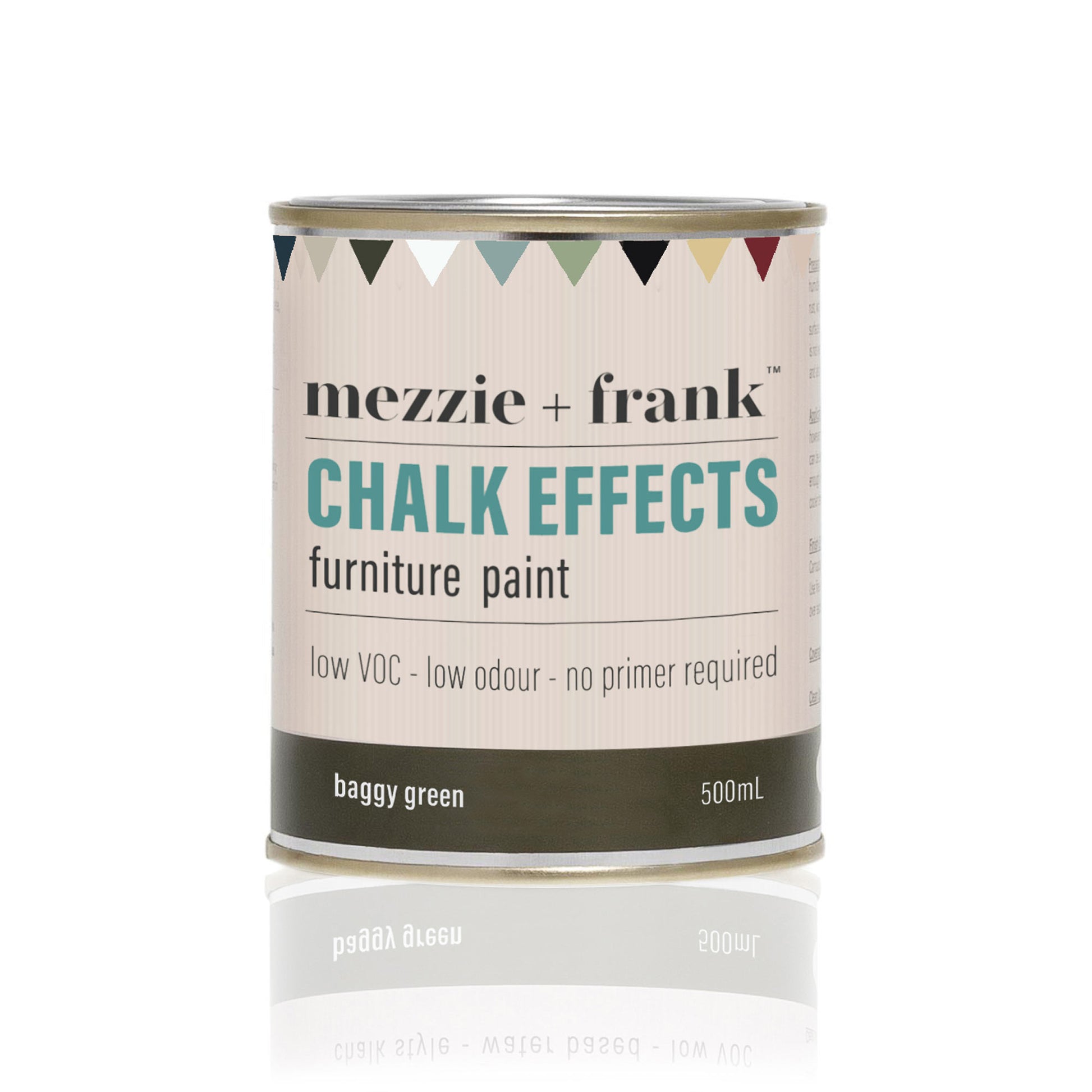 Mezzie + Frank Chalk Effects Furniture Paint can be used on a variety of surfaces with exceptional adhesion. Preparation is minimal as the paint is self-priming. Use on timber, concrete, brick, stone, gyprock, metal, ceramic, canvas, veneer & more. Fantastic for upcycling and use on furniture. Provides a plush, finely textured, extra matte finish.