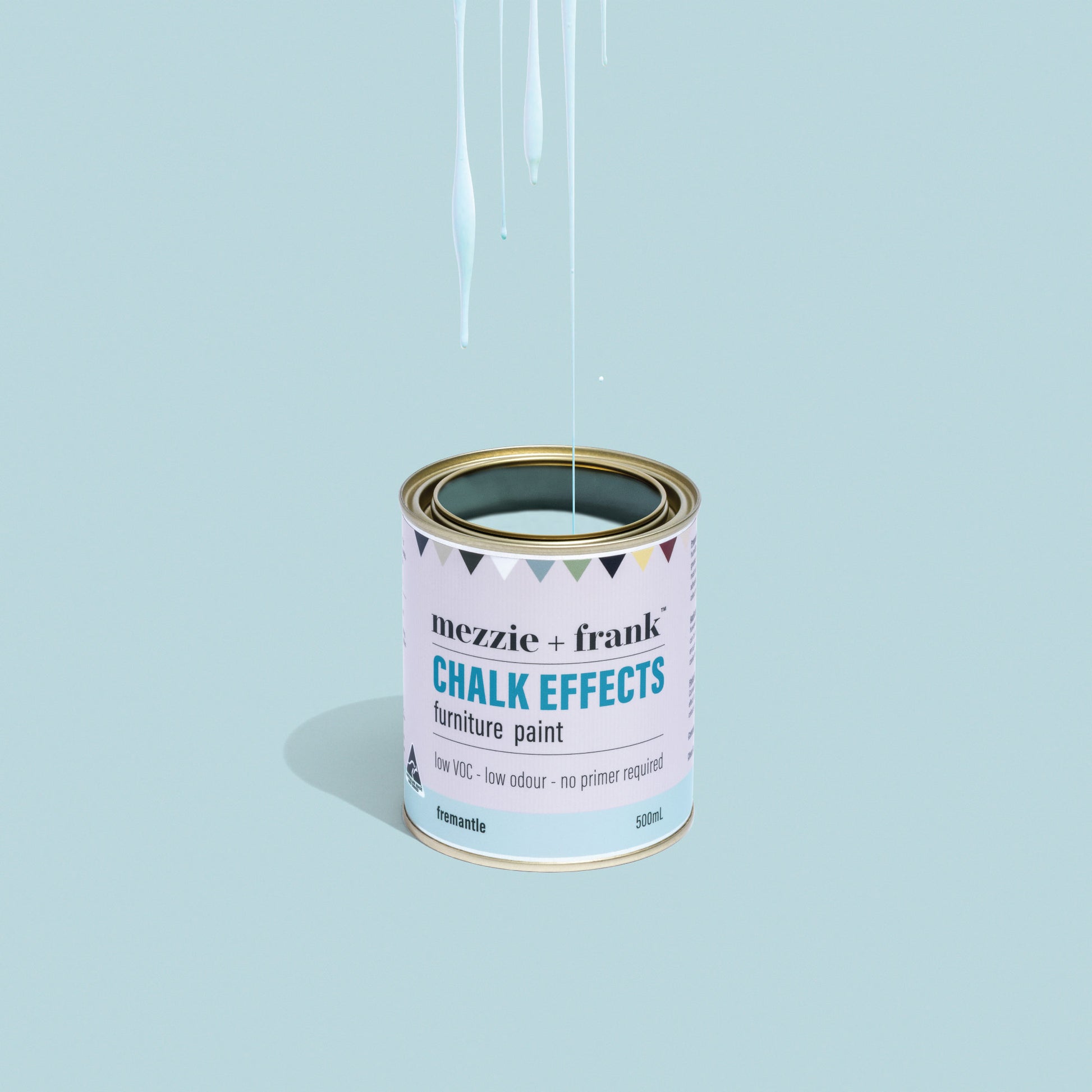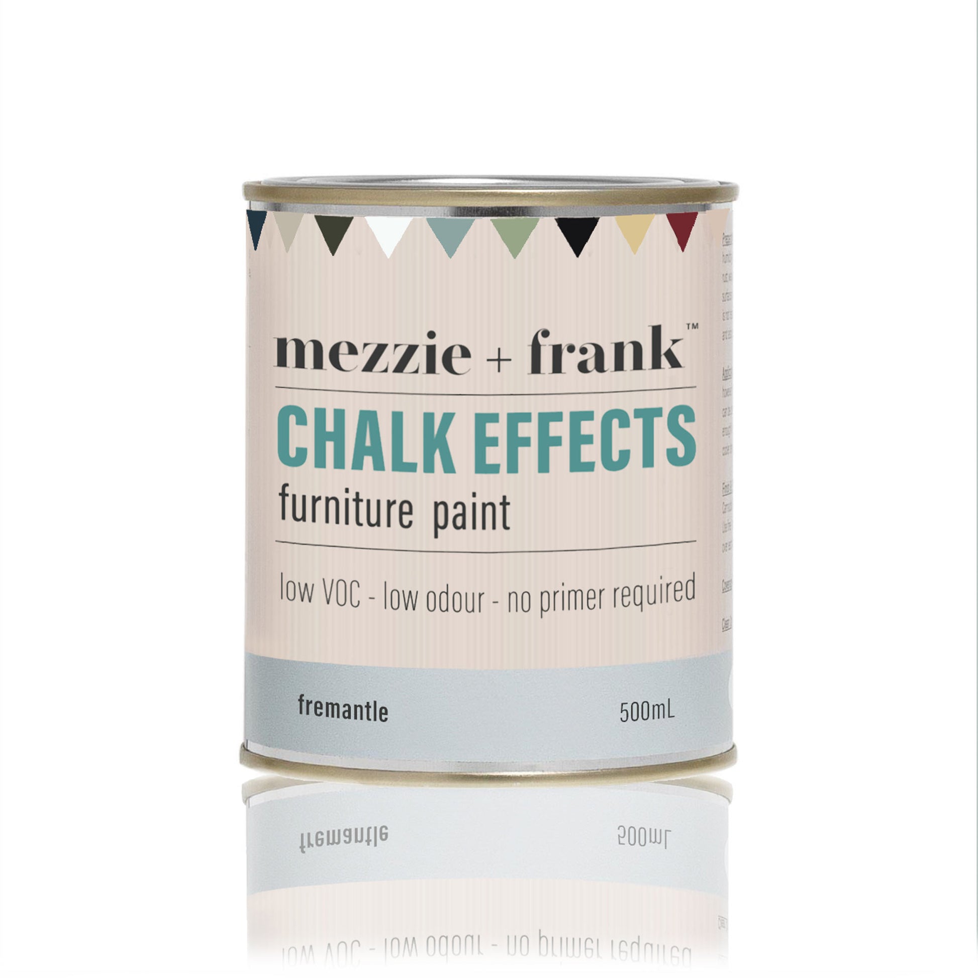 Mezzie + Frank Chalk Effects Furniture Paint can be used on a variety of surfaces with exceptional adhesion. Preparation is minimal as the paint is self-priming. Use on timber, concrete, brick, stone, gyprock, metal, ceramic, canvas, veneer & more. Fantastic for upcycling and use on furniture. Provides a plush, finely textured, extra matte finish.