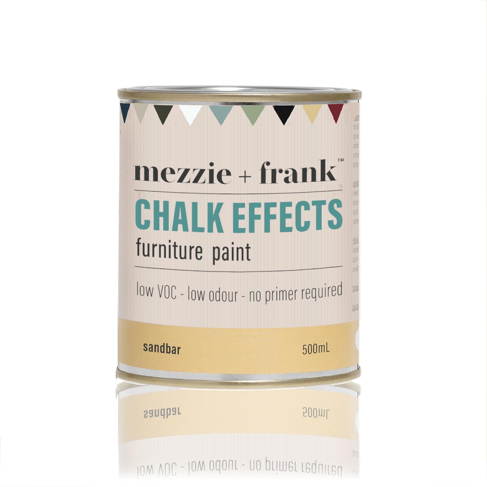 Mezzie + Frank Chalk Effects Furniture Paint can be used on a variety of surfaces with exceptional adhesion. Preparation is minimal as the paint is self-priming. Use on timber, concrete, brick, stone, gyprock, metal, ceramic, canvas, veneer & more. Fantastic for upcycling and use on furniture. Provides a plush, finely textured, extra matte finish.