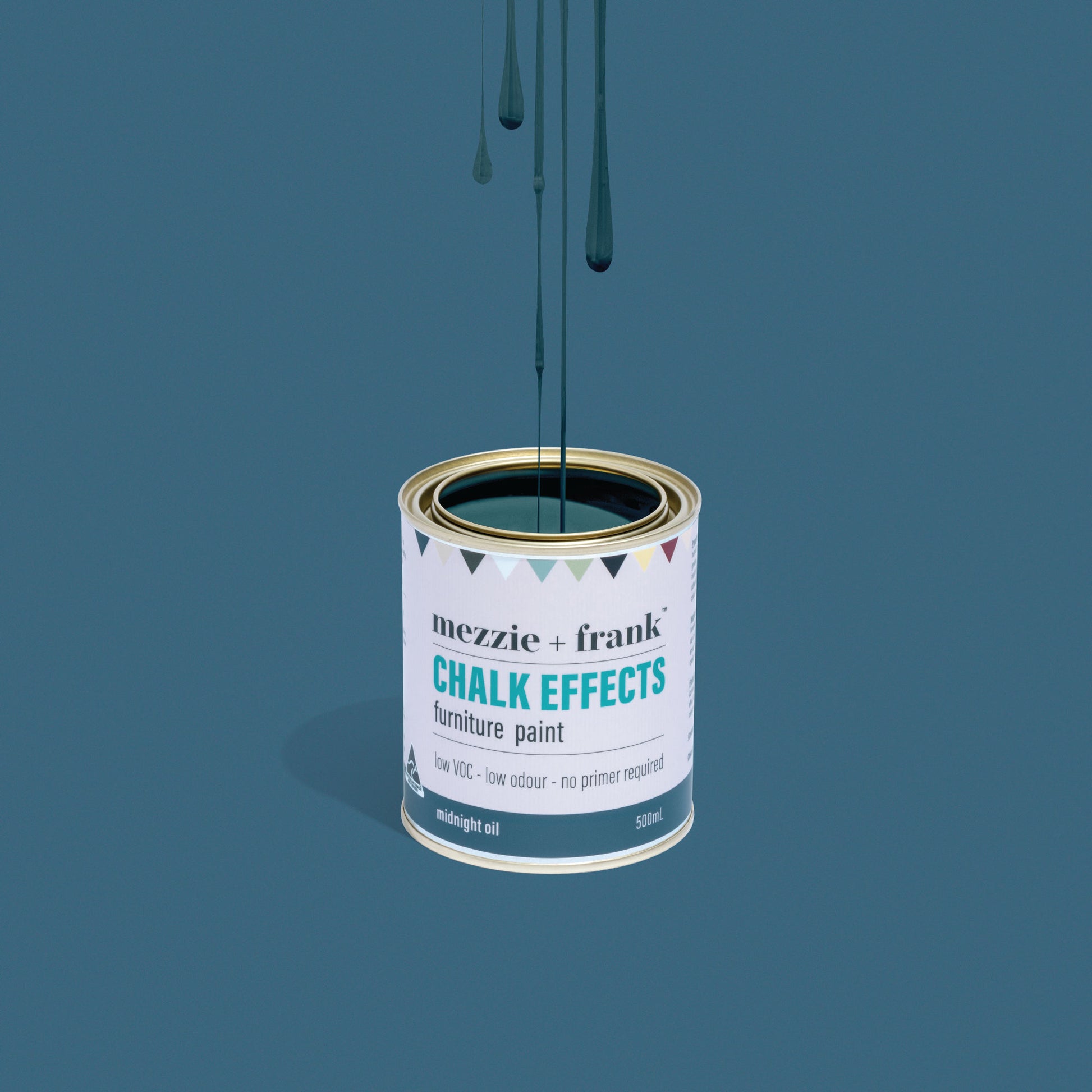 Mezzie + Frank Chalk Effects Furniture Paint can be used on a variety of surfaces with exceptional adhesion. Preparation is minimal as the paint is self-priming. Use on timber, concrete, brick, stone, gyprock, metal, ceramic, canvas, veneer & more. Fantastic for upcycling and use on furniture. Provides a plush, finely textured, extra matte finish.