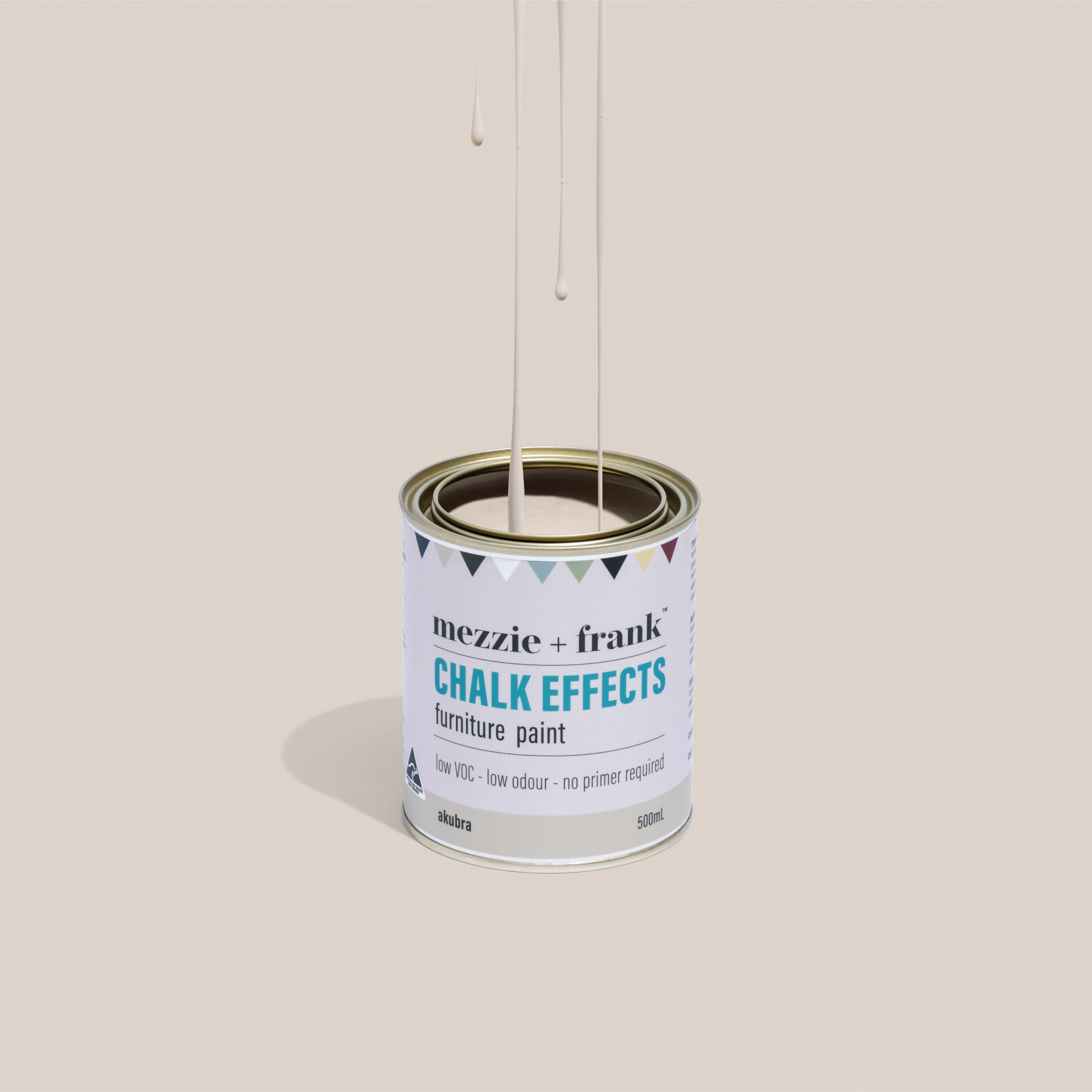 Mezzie + Frank Chalk Effects Furniture Paint can be used on a variety of surfaces with exceptional adhesion. Preparation is minimal as the paint is self-priming. Use on timber, concrete, brick, stone, gyprock, metal, ceramic, canvas, veneer & more. Fantastic for upcycling and use on furniture. Provides a plush, finely textured, extra matte finish.