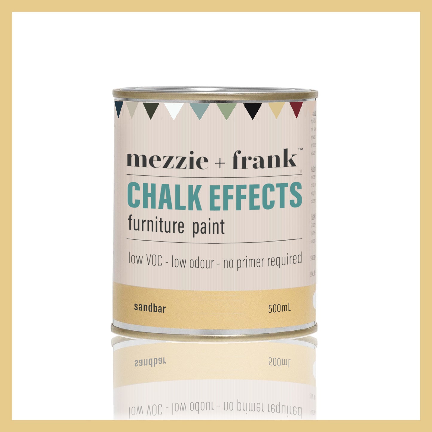 Mezzie + Frank Chalk Effects Furniture Paint can be used on a variety of surfaces with exceptional adhesion. Preparation is minimal as the paint is self-priming. Use on timber, concrete, brick, stone, gyprock, metal, ceramic, canvas, veneer & more. Fantastic for upcycling and use on furniture. Provides a plush, finely textured, extra matte finish.